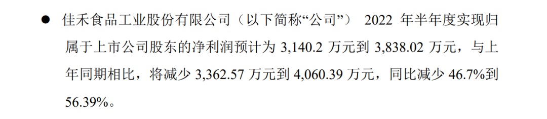 此前,佳禾食品在上市公開書中表示,其對2021年上半年的業(yè)績預測為9200萬,與同期相比增長17.9%。然而,在上半年披露的財報中,歸屬于上市公司股東凈利潤為7112.93萬元,比上年同期下滑8.9%。