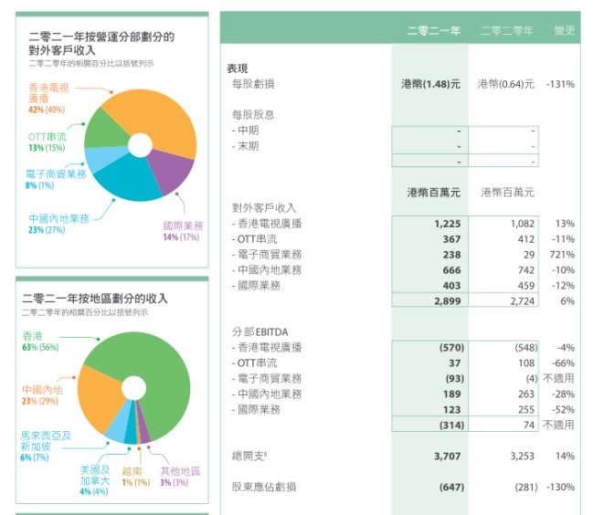 過去幾年,業(yè)績下滑讓TVB不得不謀求轉(zhuǎn)型。財(cái)報(bào)數(shù)據(jù)顯示,TVB的營業(yè)收入從2018年的44.77億港元下降至2021年的28.99億港元,四年降幅達(dá)54.43%,連續(xù)四年錄得虧損。其大股東及非執(zhí)行董黎瑞剛在去年接受媒體采訪時曾直言,過去的10年對TVB而言是“迷失的十年”。“過去這幾年TVB,我覺得很大的問題是在于創(chuàng)新乏力,全面老化!