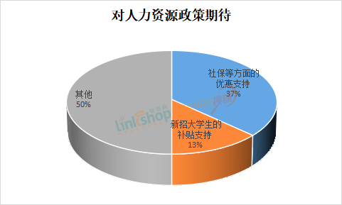 6、在人力資源政策扶持方面,37%的企業(yè)希望能得到社保等方面的優(yōu)惠支持,13%的企業(yè)希望能提供新招應屆生補貼支持。