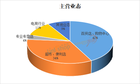 1、在參與調查企業(yè)結構中,百貨店、購物中心企業(yè)占42%,超市、便利店企業(yè)占34%,電商企業(yè)占11%,專業(yè)專賣店占4%,其他業(yè)態(tài)占比9%。