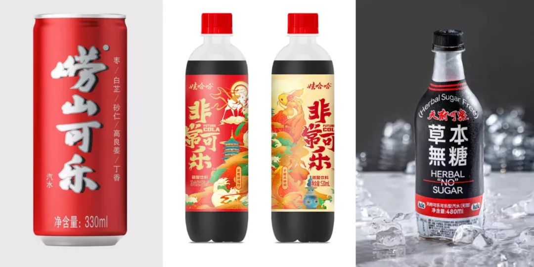 嶗山可樂、娃哈哈非常可樂、天府可樂草本無糖口味