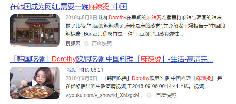 3、走紅離不開韓國的吃播們。麻辣燙、鍋包肉、冰雪碧,這是韓國網(wǎng)紅吃播們的標(biāo)配,美女吃播 Dorothy 吃麻辣燙的視頻更是引爆品類,有的一上線播放量就突破了300萬次。大小吃播們會(huì)一邊吃一邊描述味道,能快速勾起食欲,在年輕群體有不小的影響力。