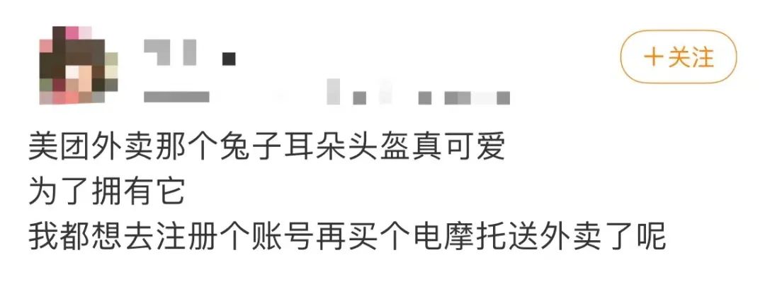在網(wǎng)上,美團騎手的兔子耳朵頭盔常被年輕人羨慕。有網(wǎng)友稱,為了擁有兔子耳朵頭盔,都想注冊個賬號再買個電摩托送外賣了。
