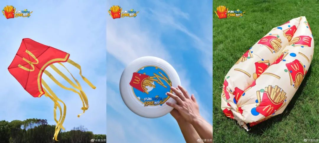 7月22日,麥當(dāng)勞宣布發(fā)售夏日限定系列周邊,包括風(fēng)箏、飛盤和充氣沙發(fā),都要在戶外活動場景使用。