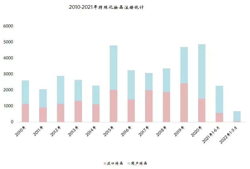 不只是普通化妝品,2022年上半年新增特殊化妝品注冊數(shù)量更是銳減。