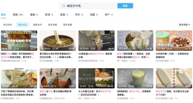 如果你打開B站搜“綠豆沙牛乳”,會出現(xiàn)滿屏在家自制的教程視頻。而且在視頻中,大家都會不約而同地談到綠豆沙牛乳的口感和味道,比如“沙沙的口感”“清甜”“比奶茶好喝一萬倍”等等。