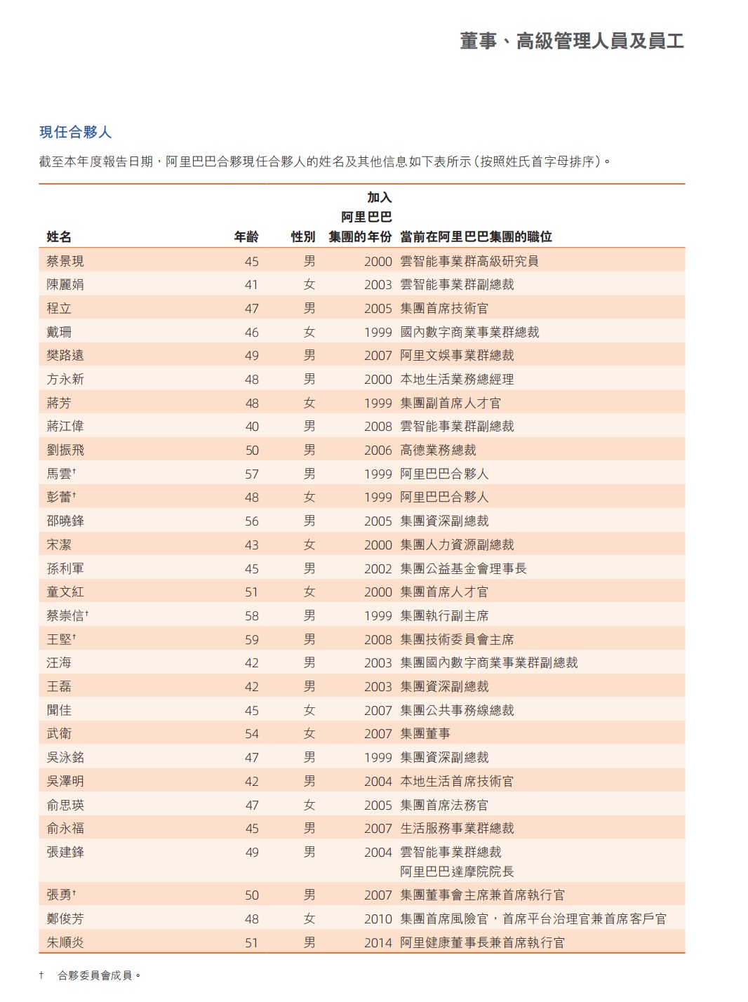 此外,阿里巴巴還披露了最新合伙人名單,目前共有29位成員。