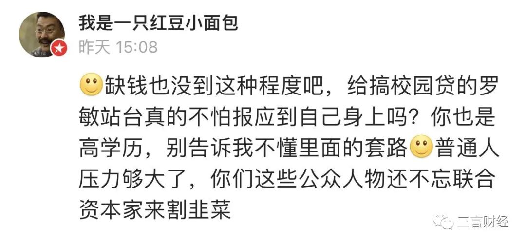 不過(guò)相比羅敏的控評(píng),這個(gè)賬號(hào)還算大度,評(píng)論靠前的都是在說(shuō)學(xué)生貸。