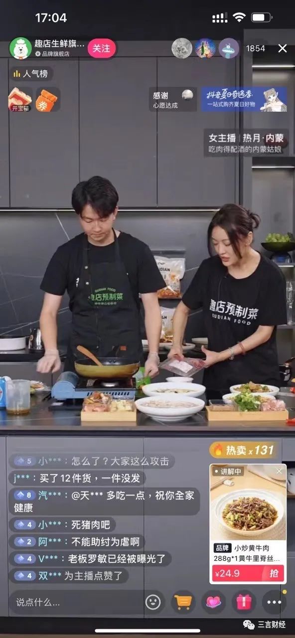 7月17日,羅敏拉來(lái)明星賈乃亮、傅首爾在抖音帶貨預(yù)制菜,“1分錢(qián)搶購(gòu)酸菜魚(yú),500臺(tái)iPhone13免費(fèi)送”吸引大量用戶(hù)涌入。
