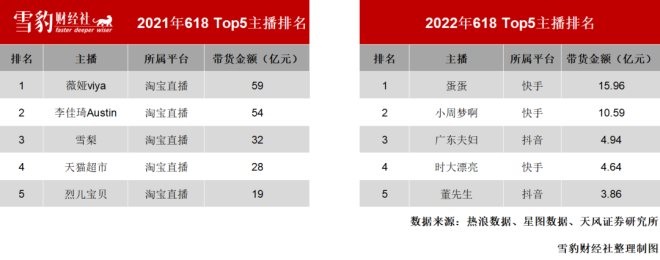 淘寶曾憑借著薇婭和李佳琦霸榜直播帶貨,但隨著“二王”退場,淘寶在直播電商中的聲量日益削弱。去年618大促期間,直播帶貨Top 5主播全部來自淘寶直播,而今年的Top 5主播由抖音、快手瓜分,再無一人出自淘寶。