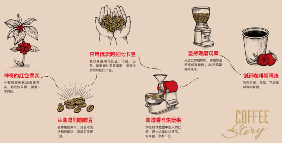 幸運(yùn)咖在介紹產(chǎn)品時(shí)說(shuō),其咖啡豆是產(chǎn)自哥倫比亞、巴西等地的阿拉比卡豆,椰椰拿鐵所用的菲諾牌厚椰乳,這些用料與星巴克、瑞幸等品牌的用料非常接近。