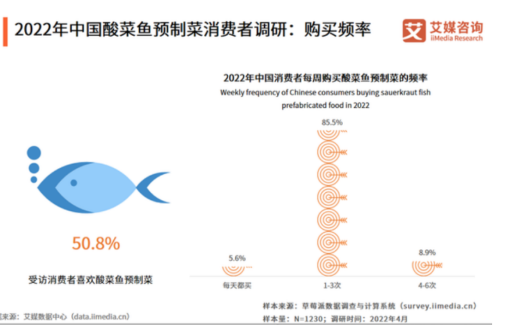 在預制菜的品類中,酸菜魚可謂是C位出道。艾媒咨詢數(shù)據(jù)顯示,超過50%的受訪消費者表示,在所有預制菜品類中最喜歡酸菜魚預制菜,購買頻率也較高。