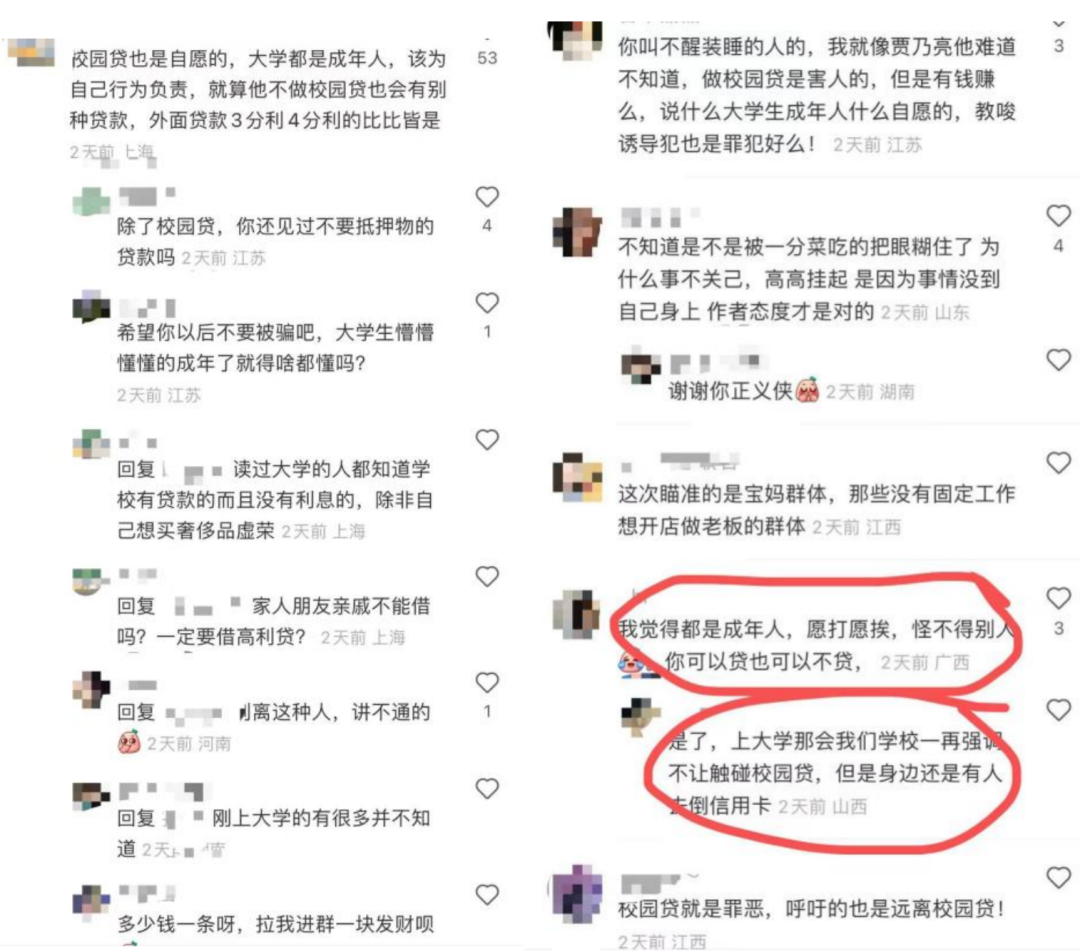 最讓人不解的是,在羅敏揭底的相關(guān)視頻下面,還有這么一群人幫著“洗白”,評論稱“校園貸是你情我愿”“他之前的校園貸和我買他家預制菜有什么關(guān)系,這樣是道德綁架”……