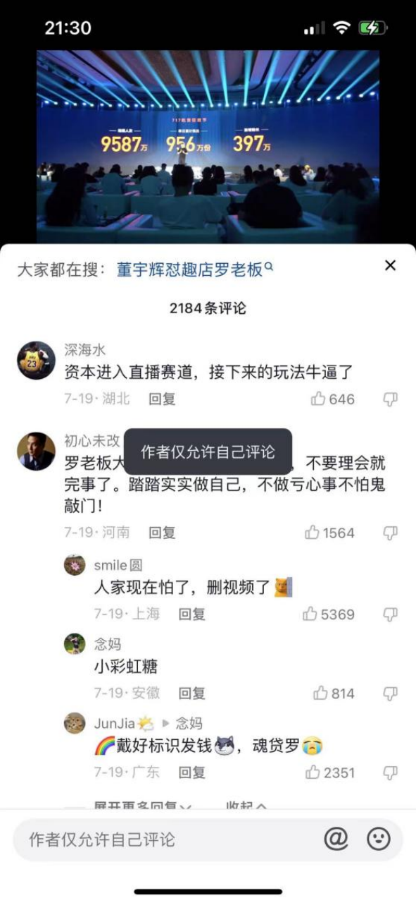 而趣店羅老板的賬號自19號后便無新作品發(fā)布,甚至無法評論。