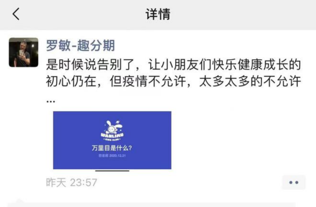 今年3月,羅敏還在朋友圈依依惜別“萬里目少兒”。