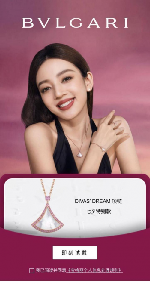 為了方便消費(fèi)者足不出戶也能選購到十分合宜的禮物,京東還聯(lián)合BVLGARI寶格麗在七夕期間特別上線了全新的AR試戴功能。消費(fèi)者點(diǎn)擊試戴按鈕,即可在線佩戴品牌七夕愛意特別款DIVAS’DREAM項(xiàng)鏈,沉浸式邂逅七夕浪漫禮遇。