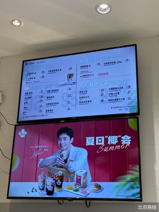 不過,無論是三家門店中“北美傳奇咖啡始于1964”的slogan,還是張貼的海報,更像是Tims咖啡在易捷便利店內(nèi)開了一家門店。