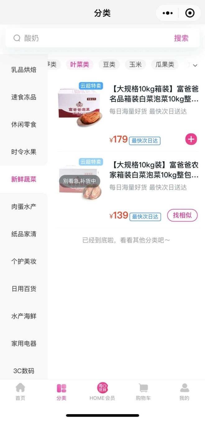 每日優(yōu)鮮APP上的葉菜欄 / 深燃截圖