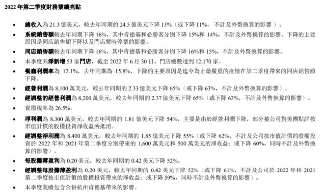 百勝中國(guó)第二季度凈利潤(rùn)暴跌近六成