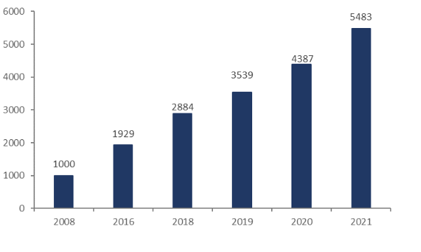 在銷售模式改變后,經(jīng)銷商也有動力來擴張規(guī)模,所以紫燕食品的門店數(shù)量也迎來爆發(fā)式增長,2018-2021年紫燕百味雞門店擴張的增速達20%以上。根據(jù)窄門餐眼數(shù)據(jù),截至2021年底“紫燕百味雞”門店已超過5400家,同期絕味食品、煌上煌和周黑鴨的門店數(shù)分別為13714家、4281家、2781家。