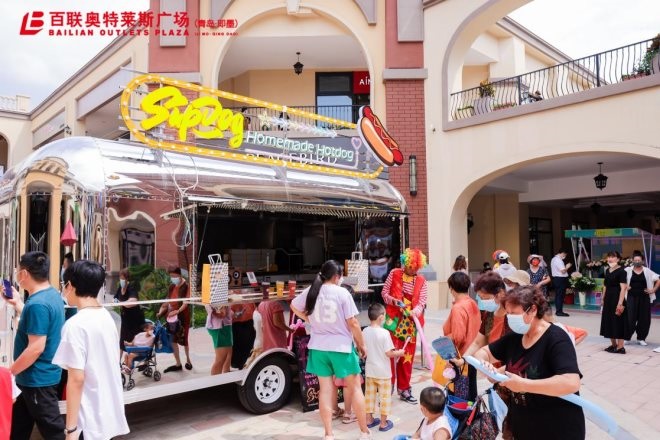 試營業(yè)期間,奧萊小鎮(zhèn)還舉行了“百聯有好市”的市集活動,引進輕食、特色飲品、手作制品等;伴著現場演奏,如常親切的煙火氣中,暢享一波歡樂食光。