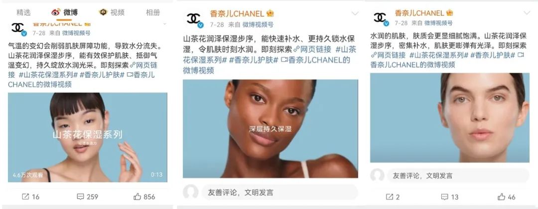 據(jù)了解,7月27-28日,香奈兒發(fā)布了一系列山茶花保濕系列護膚產品的宣傳視頻,由不同膚色人種的三位模特出鏡演繹。但較之于白人和黑人模特,網(wǎng)友們發(fā)現(xiàn)片中的亞洲模特是單眼皮、扁平臉,且眼間距較寬,并不能代表亞洲女性的普遍長相。