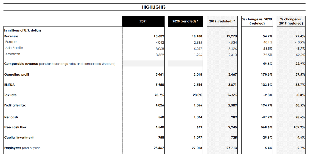 ▍截自香奈兒2021年財報