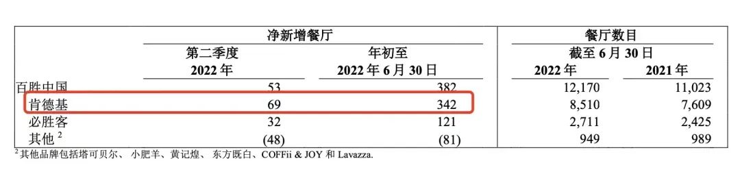 這是來自百勝中國2022年第二季度財(cái)務(wù)業(yè)績報(bào)告中的數(shù)據(jù)。