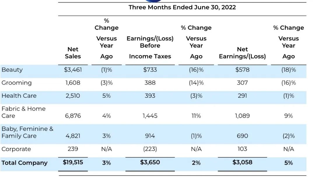 在2022財(cái)年全年數(shù)據(jù)中,五大板塊凈銷(xiāo)售額均有所增長(zhǎng),但受上述原因影響,美容、洗漱和嬰幼兒及家庭護(hù)理板塊凈利潤(rùn)有所下降。