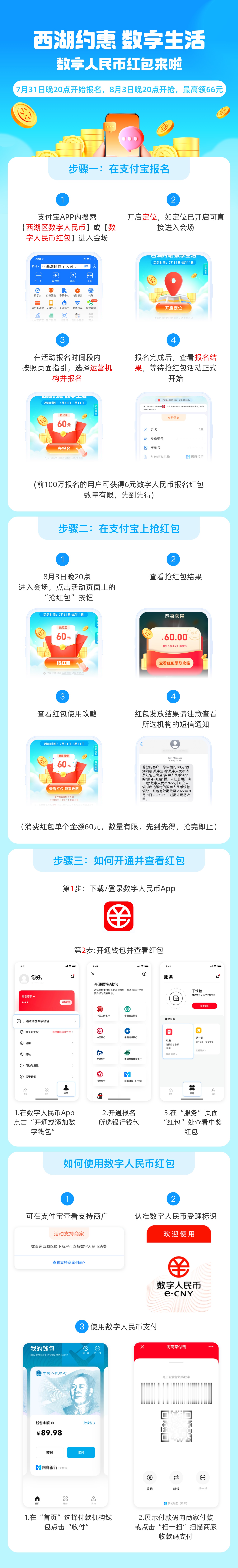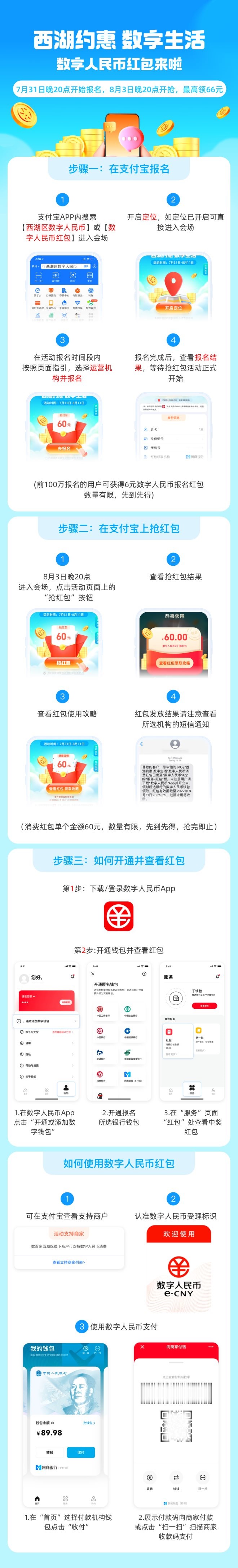 杭州西湖區(qū)數(shù)字人民幣紅包來了!周日晚支付寶開搶