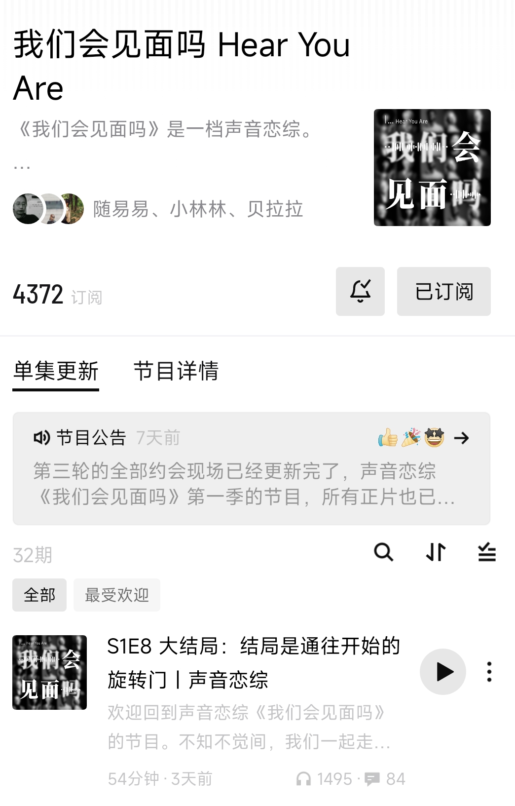 2022年6月,一檔播客節(jié)目名為《我們會(huì)見面嗎》的播客節(jié)目吸引了不少目光,因?yàn)樗臉?biāo)簽是“聲音戀綜”。