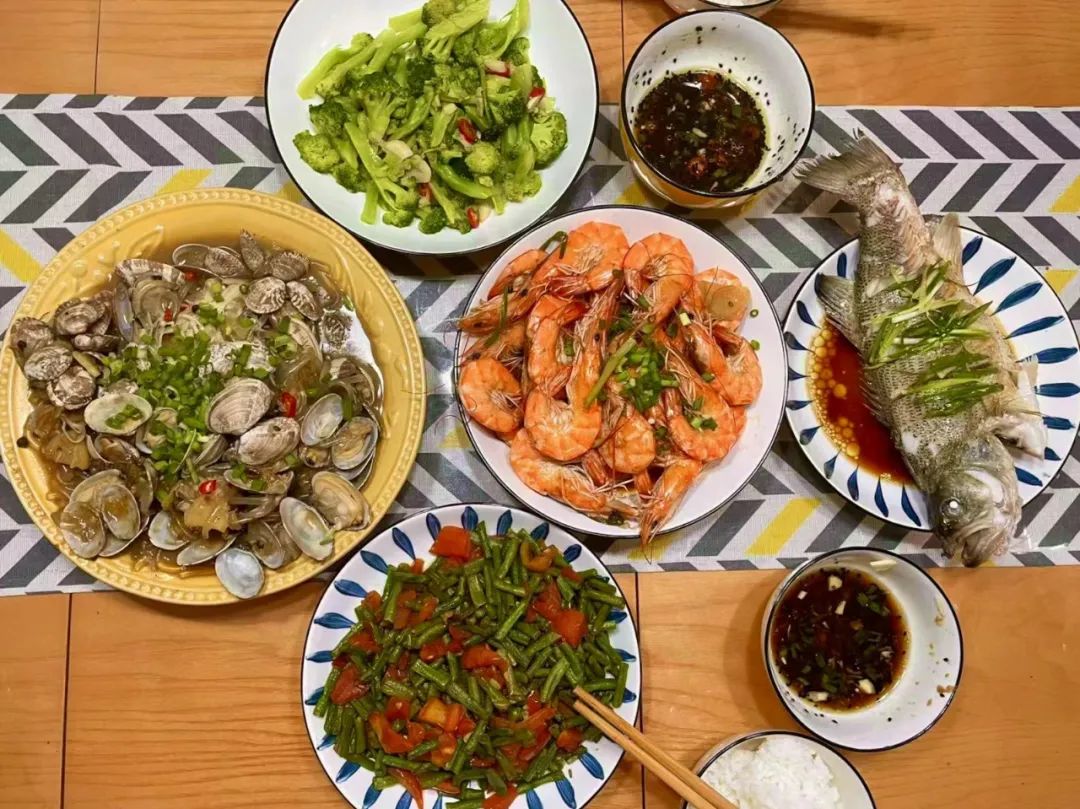 “很需要抓住周末的時間,好好補充一下蛋白質、維生素!崩桌诎l(fā)來一張午餐圖,清蒸鱸魚、白水煮蝦,與時蔬們一起,構成了豐盛一餐。