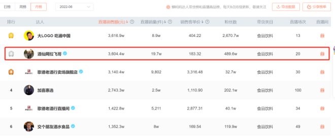 除了拉飛哥外,酒仙網(wǎng)還有抖音賬號(hào)136.1萬(wàn)粉絲的“酒宮格格”、68.8萬(wàn)粉絲的“小秋秋”、以及快手賬號(hào)71.8萬(wàn)粉絲的“酒仙網(wǎng)小美”等多名優(yōu)秀直播達(dá)人。