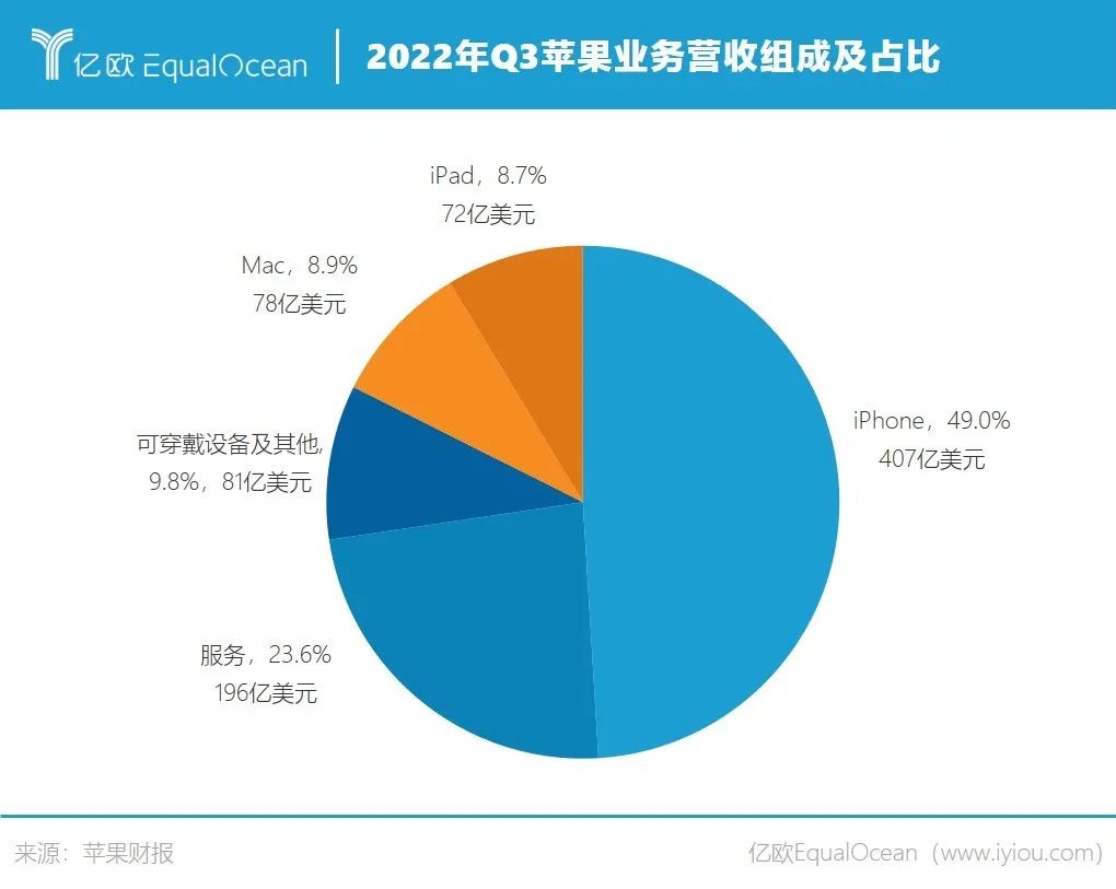 財(cái)報(bào)數(shù)據(jù)顯示,蘋果第三財(cái)季iPhone收入達(dá)407億美元,同比增長3%,在各版塊業(yè)務(wù)中營收占比達(dá)到了49%。