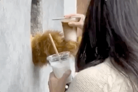 上海永康路,一面水泥墻,一個不規(guī)則洞口,伸出一只毛茸茸的熊爪,遞出顧客剛下完單的咖啡。20元一杯,三杯贈送一支玫瑰花,還能和熊爪拍照,加之“店員都是殘疾人”的故事背景,熊爪咖啡在普通網(wǎng)紅店的基礎(chǔ)上,又增添了幾分公益色彩。
