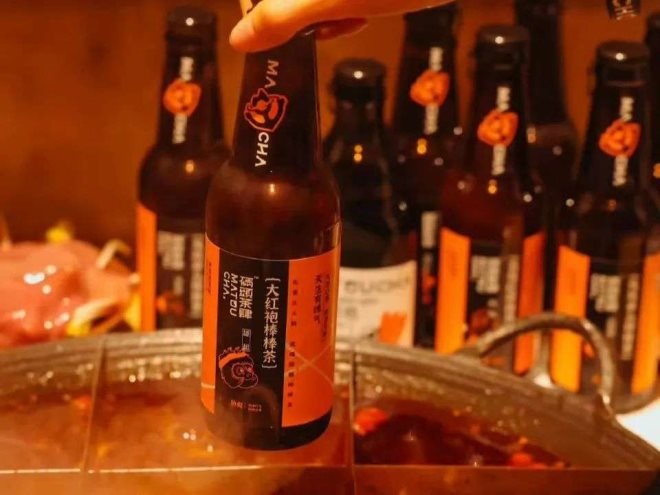 帶有啤酒風味的氣泡純茶,很受當地年輕人歡迎,小紅書上有人分享自己3天喝了11瓶氣泡茶的經歷,還有人感嘆,離開了重慶依然想念碼頭茶肆的那口氣泡茶。