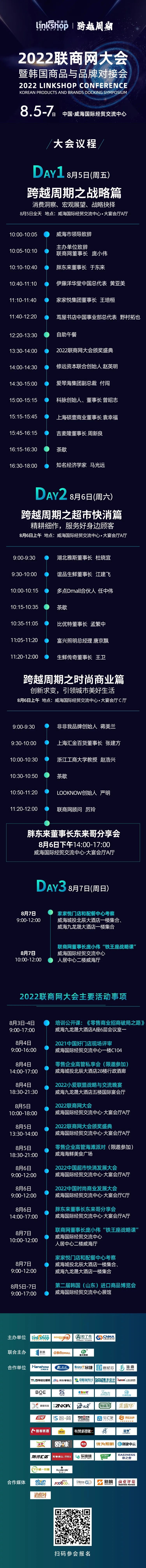 2022年8月5-7日,由聯(lián)商網(wǎng)、搜鋪網(wǎng)、知了殼主辦的2022聯(lián)商網(wǎng)大會暨韓國商品與品牌對接會將在山東威海國際經(jīng)貿(mào)交流中心召開。