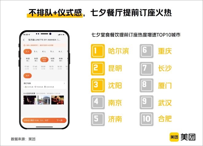 ▲七夕餐廳、酒店、景區(qū)預(yù)訂火熱,數(shù)據(jù)來自美團(tuán)