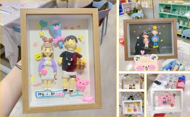▲“無業(yè)游民DIY手工坊”店內(nèi)顧客制作的情侶相框作品,受訪者供圖