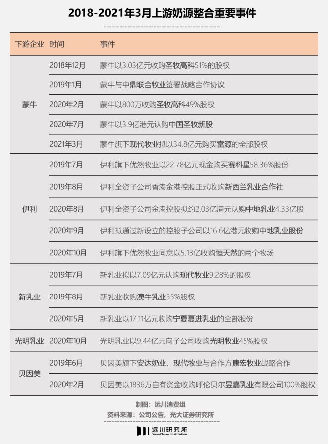 受制于自然條件,好的牧場(chǎng)都是稀缺資源,巨頭都靠著鈔能力收購(gòu)或并購(gòu),在乳業(yè)形成乳業(yè)巨頭和牧場(chǎng)巨頭相互綁定的情況。