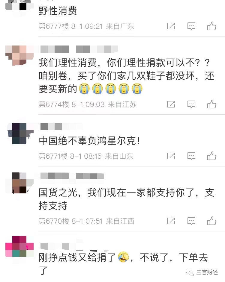 三財(cái)財(cái)經(jīng)曾在《娘嘞,感覺(jué)你都要倒閉了還捐了這么多》和《鴻星爾克直播銷(xiāo)售破1億,庫(kù)存被網(wǎng)友搶光,主播開(kāi)始上才藝了…》兩篇文章中對(duì)當(dāng)時(shí)的情況進(jìn)行過(guò)描述。