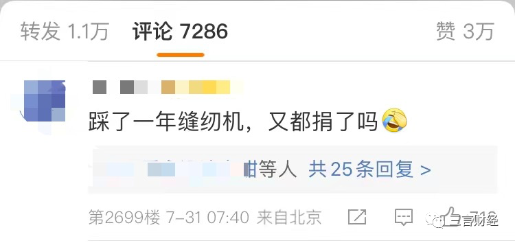 有網(wǎng)友評(píng)論稱,踩了一年縫紉機(jī),又都捐了嗎?