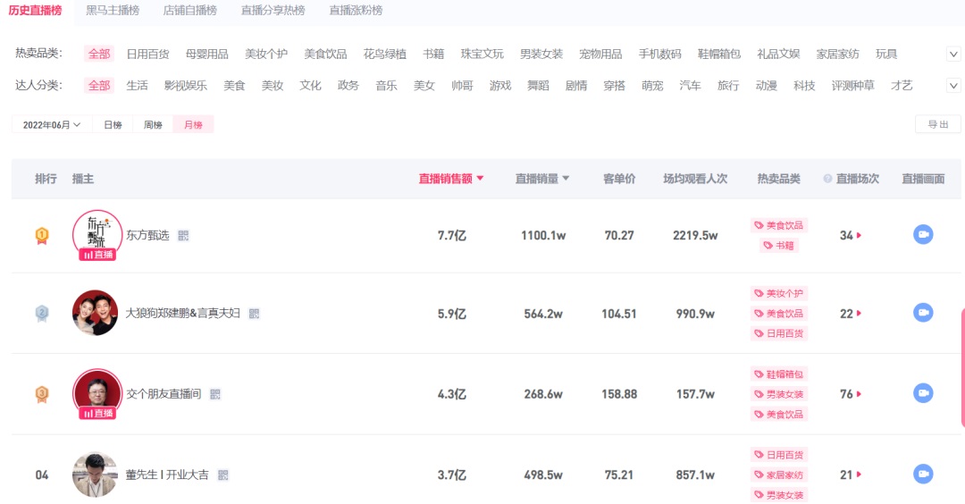 而除了異軍突起的東方甄選以外,還有諸多腰部主播在頭部主播集體“讓位”的形勢(shì)下冒了頭。