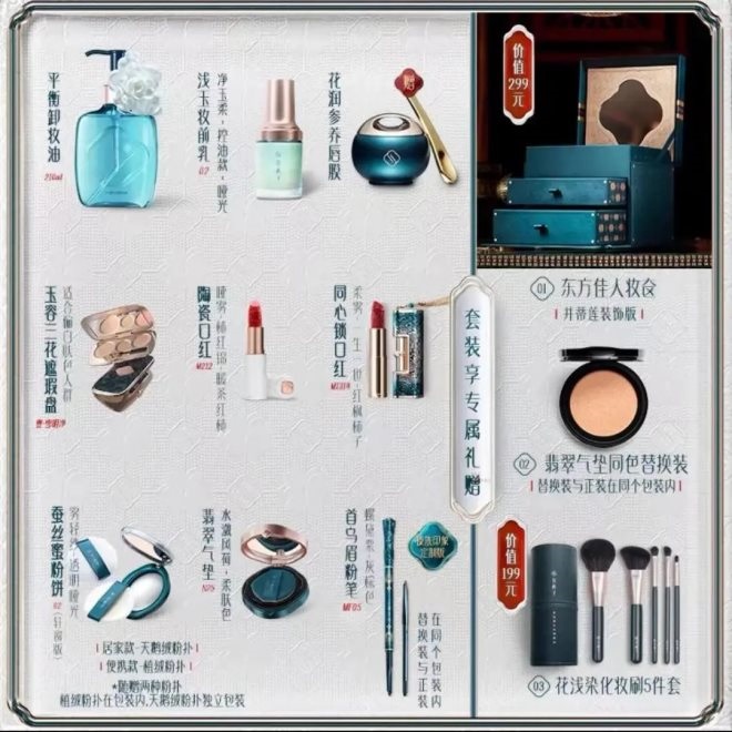 在男生眼里,像花西子推出的這種“東方佳人妝奩”,包括了卸妝油、蜜粉餅、遮瑕盤、口紅、眉筆等大大小小十幾件單品,可以說是面面俱到,包裝還賊好看,寓意也很好,女朋友沒理由不喜歡啊。