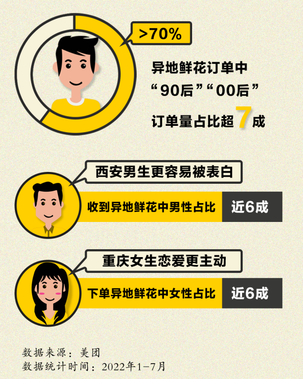 ▲美團數(shù)據(jù)顯示,年輕人成為異地鮮花下單的主力軍
