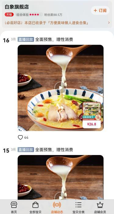 據(jù)中國新聞網(wǎng),從3月15日起,白象食品在其網(wǎng)店直播中接連兩天打出了“全面預(yù)售,理性消費”的標(biāo)題。