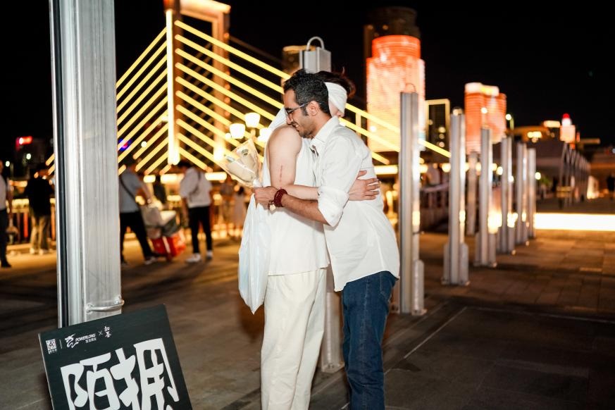 七夕期間,老外灘還準(zhǔn)備了“FREE HUG”陌生人擁抱活動(dòng)。來自陌生人的一個(gè)擁抱,給在這座城市中生活的人們帶去片刻安慰;來自陌生人的一句“你最近還好嗎”,給在這座城市中打拼的人們一個(gè)敘說心事的機(jī)會(huì)。