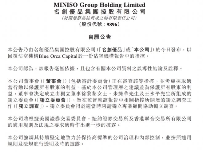 名創(chuàng)優(yōu)品“自愿公告”,圖/報(bào)告原文
