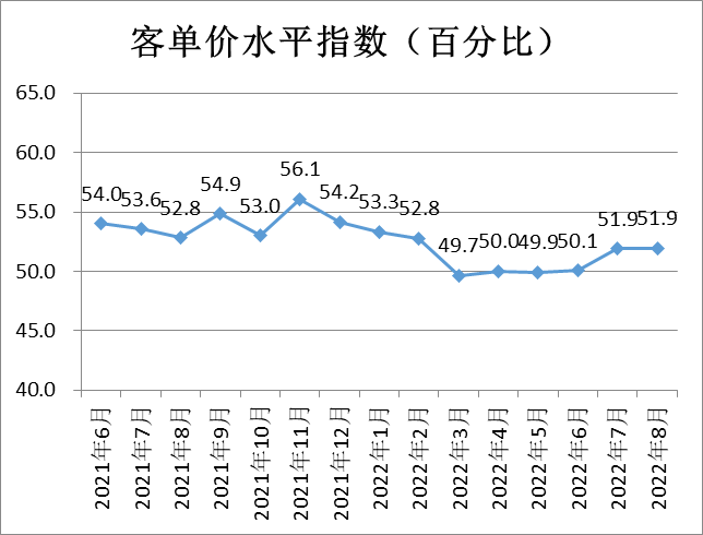 客單價水平指數(shù)為51.9%,與上月持平,表明商品經(jīng)營類企業(yè)預(yù)期本月客單價維持穩(wěn)定。