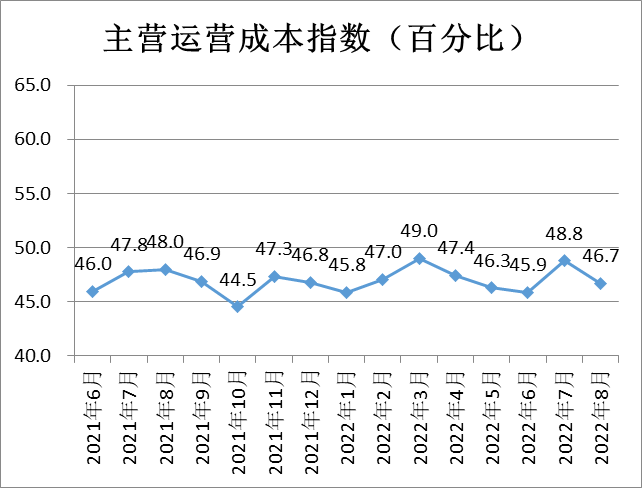 反向指數(shù)主營業(yè)務(wù)運營成本為46.7%,比上月小幅下降2.1個百分點,表明商品經(jīng)營類企業(yè)成本有所增加。